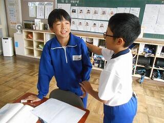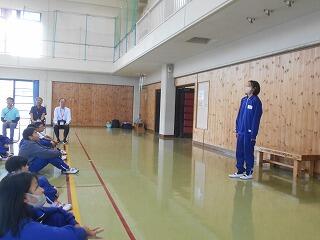 昨年度の教育実習生が、今年も1週間来校することになりました。朝の放送時に紹介を行いました。