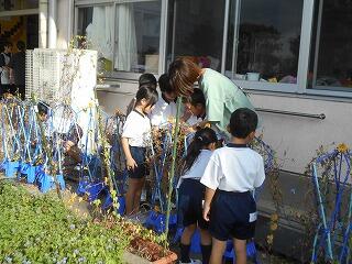 朝の活動の様子【1年】(10/2 アサガオ)