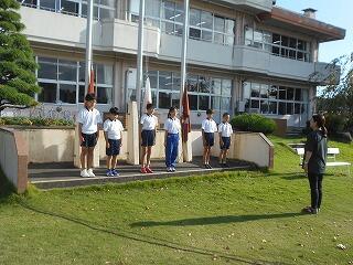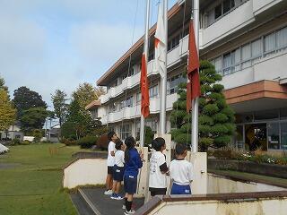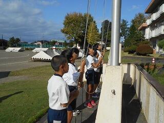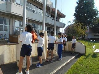 朝の旗揚げの様子(10/2)