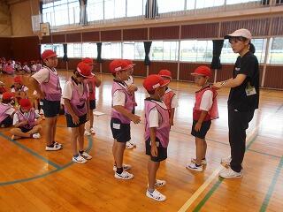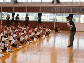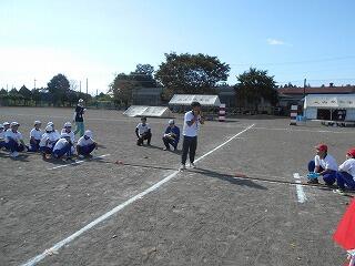 業間には、全校リレーの並び方や走る順番、走るときの注意点について確認しました。