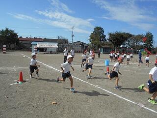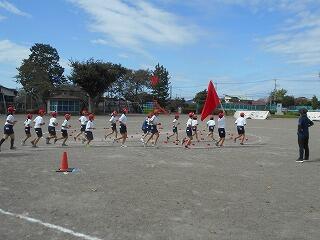 運動会全体練習の様子②(10/1 業間 全校リレー)