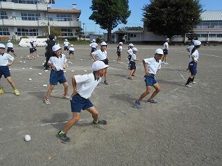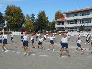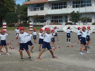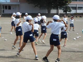 運動会全体練習の様子②(9/30 業間 玉入れ)
