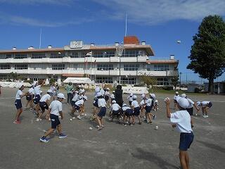 運動会全体練習の様子①(9/30 2校時 綱引き)