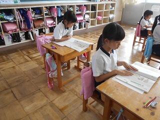 雨の日は、図書室が大盛況です!図書室が混んでいるのを見越して、教室でお絵描きや色塗り、トランプや楽しそうに雑談をする児童も多くいます。それぞれの児童が、天気などの状況に応じて、人に迷惑をかけない範囲で上手に過ごすことができています。「まわりの様子を見ながら、自分なりの時間を過ごす。」当たり前のようですが、大切な力です!