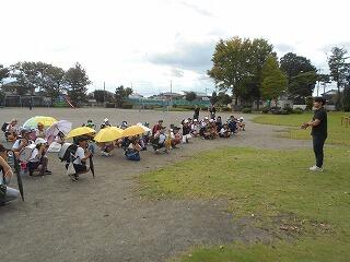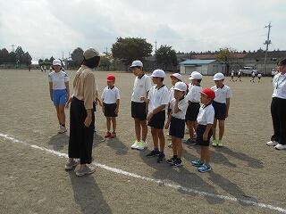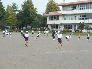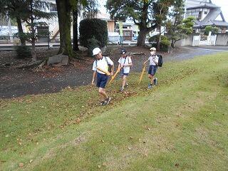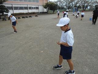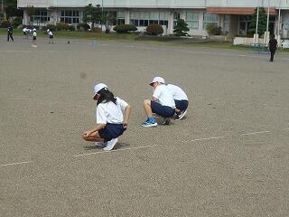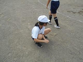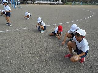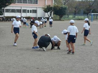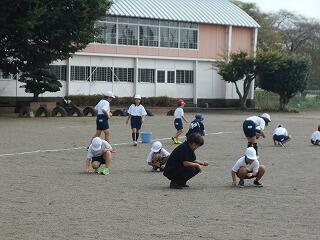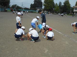 運動会が安全に実施できるよう、業間に全校生で校庭の石拾いを行いました。