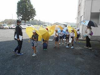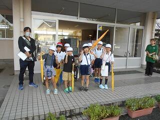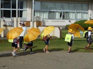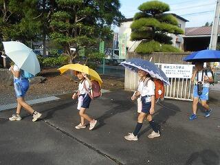 2年生が、「学区内探検(生活科)」に出掛けていきました!気温が暑いので、日傘を差して活動しています。