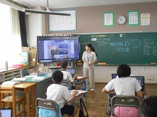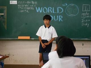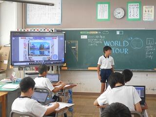 6年生が、行きたい国の魅力について、英語で発表会を行っていました。