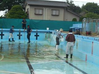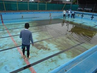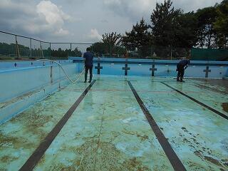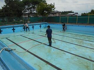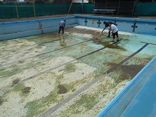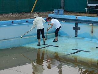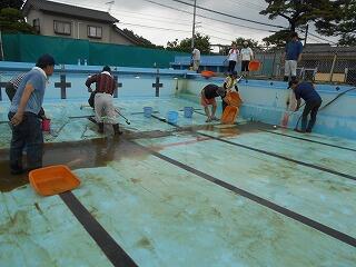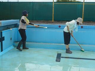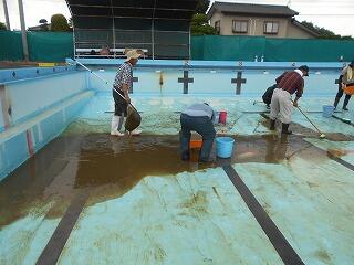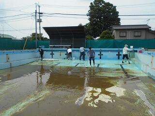 プール清掃の様子【保護者・地域の方による事前清掃】(5/22)