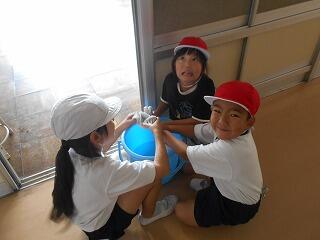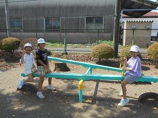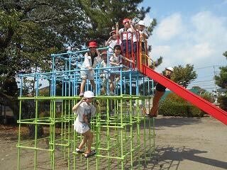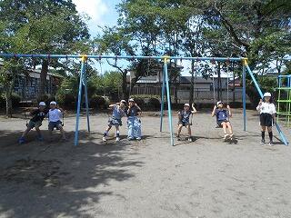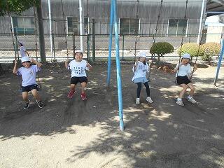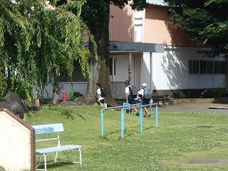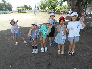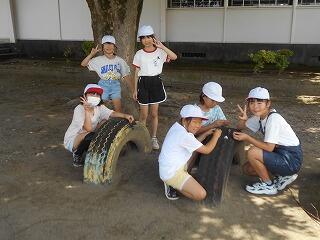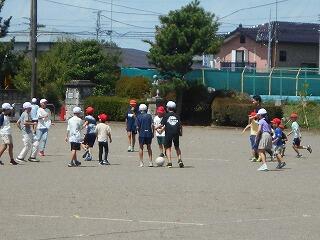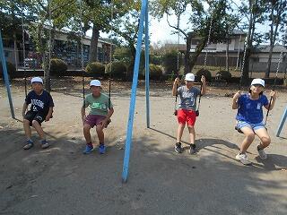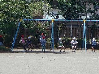 暑いですが、風もあるので(新学期最初の長い休み時間ということも考慮し)、激しい運動はせず、のんびりと遊んでいます!(WBGTは、ぎりぎり規定内です。)