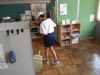 給食後の自教室清掃とは別に、子供たちがお世話になった校舎内を掃除してくれていました。
