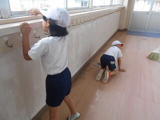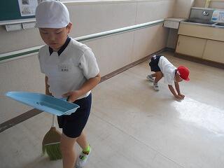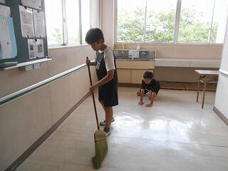 1学期最後の通常清掃です。どの児童も、とても良く働いています!