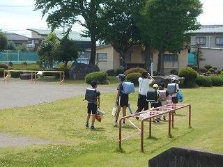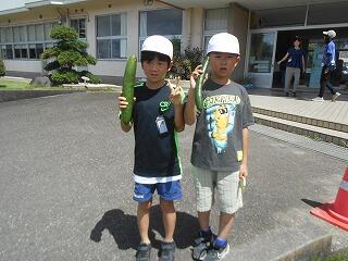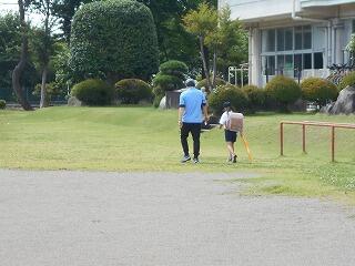 眩しく照りつける夏の日差しを受け(雨がもう少し降ってほしいところですが)、教材園の野菜がすくすくと育っています!ところが、広い広い校庭に目を向けると、全くと言っていいほど雑草が生えていません。用務員が、毎日毎日こつこつと生え始めた雑草を見付けては取り除いてくれています。職務と言ってしまえばそれまでですが、暑い中、子供たちのいない、誰も見ていない校庭に出て作業にあたる姿には、ただただ感謝するばかりです!