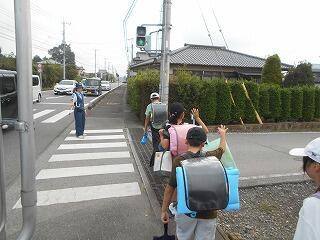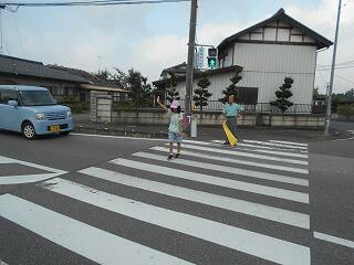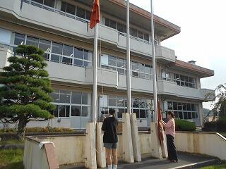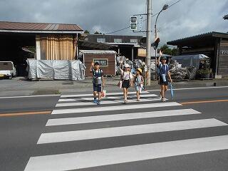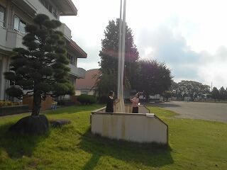 「今日の旗当番、一人なの?」「みんな忙しそうなので、私一人で来ました!」とのこと。さすが6年生!新学期初日から、まわりの様子を見て、自分にできることを見付け、臨機応変に行動してくれています。