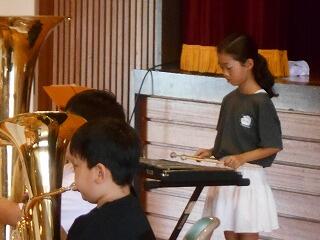 終業式の前に、ブラバンのミニ発表会が行われました。