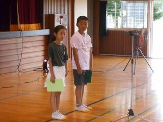 体育館での実施を予定していた始業式ですが、児童の安全を第一に考え、リモートでの実施としました。(今朝の真岡市のWBGTは29.9!熱中症警戒アラートが発表されているので、教務主任が再計画してくれました。)校長からは友達と会えることへの喜びや感謝の気持ちをもって頑張ることの大切さ、児童からは夏休みの思い出や2学期の抱負、学習指導主任からは自主学習やめあてについて話がありました。