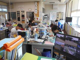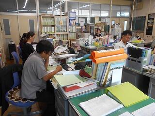 午前中は、大内中学校に大内地区の小中学校の先生方が一堂に集まり、合同で「不登校対策」について研修を行いました。学校に戻り、昼食を済ませた後は、休む間もなく「指導案の検討会」を行っています。