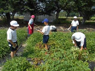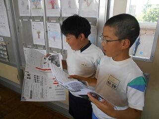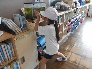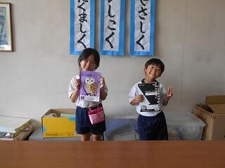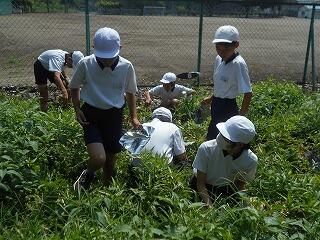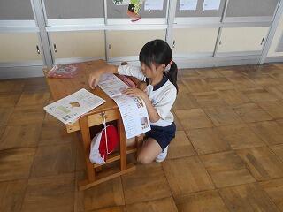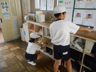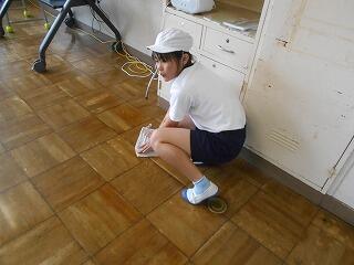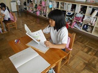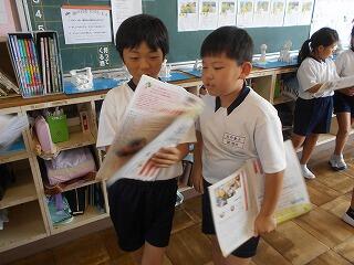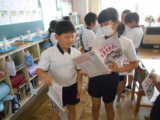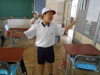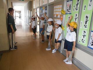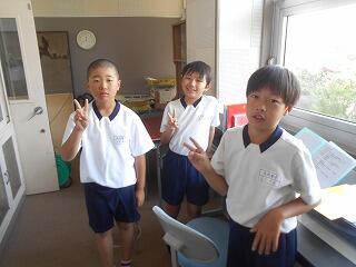 今日の業間は、1年生と2年生が学校林に行っていて、4年生も社会科校外学習に行っていて、5年生と6年生はプールから上がってきたばかりで・・・、子供たちの数が少ないです。