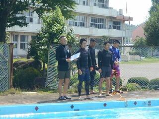 3校時に、「着衣泳(4~6年)」を行いました。さすが高学年!多くの児童が「浮いて待つ」ことができていました。御指導いただいた「らっこクラブ」の皆様、お忙しい中、子供たちのために御来校いただきありがとうございました!