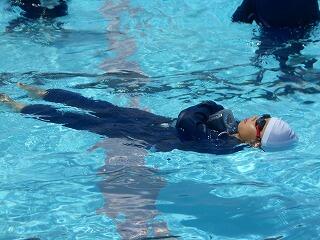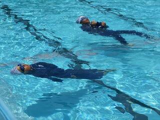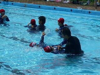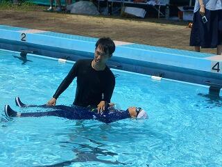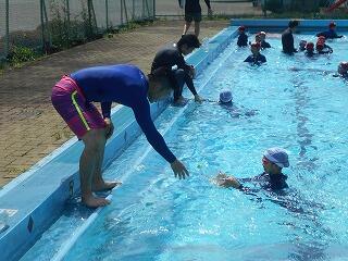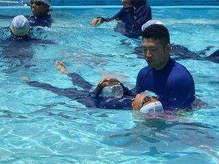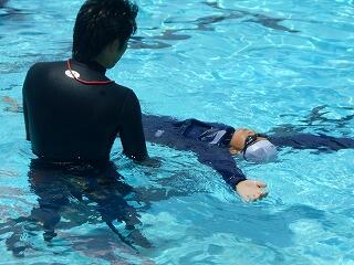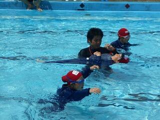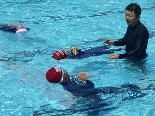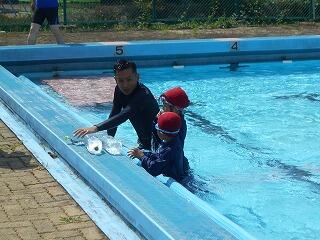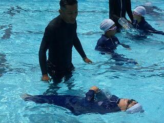 2校時に、「着衣泳教室(1~3年)」を行いました。「らっこクラブ」の皆様に御指導いただきました。