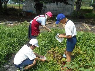 学校林で「生き物探し」【1年・2年】(6/27 2~3校時 生活科)
