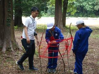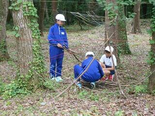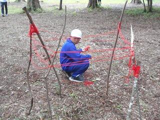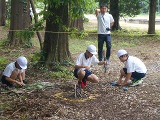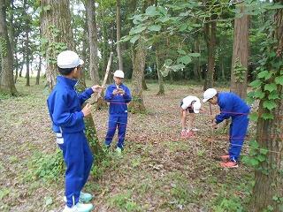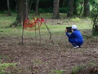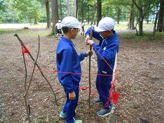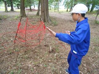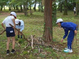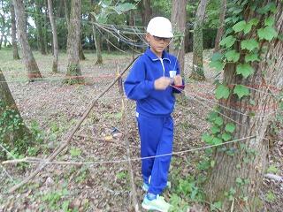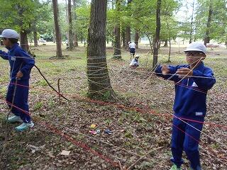 6年生が、学校林で図工の授業を行いました。糸を使って空間を表現することがねらいなので、教室でもできる授業内容ではありますが、担任のアイディアで「学校林」を活用しました。教科横断的な学習や学校の特色、ふるさと教育など、いろいろな要素を含ませながら学習を深めることができました。