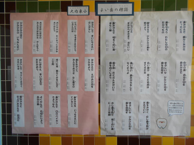 先週は、「大内東小 歯と口の健康週間」でした。「よい歯の標語」が児童昇降口に掲示されています。ご来校の際には、是非ご覧ください!