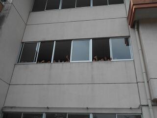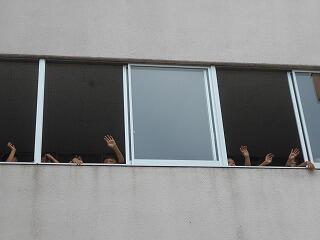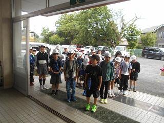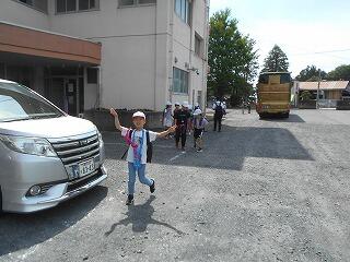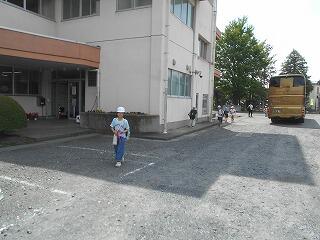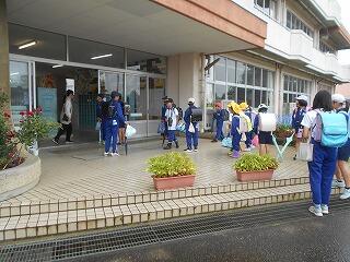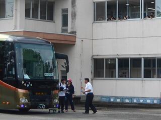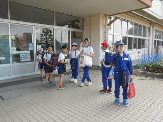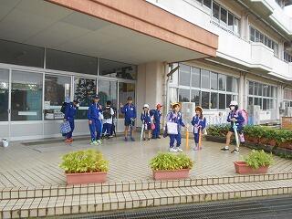 4・5年生が出発してしまった後なので、寂しい見送り(校長・事務職員・学校司書・用務員)と思っていると、2階から「いってらっしゃい!」の大きな大きな声が!6年生がしっかり見送ってくれました!