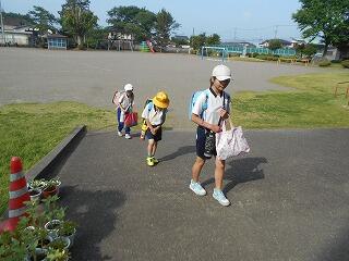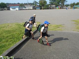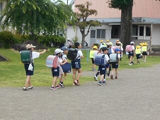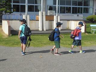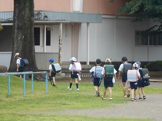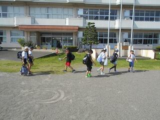 日光から戻った4・5年生と、自分たちだけの学校を満喫した6年生が、なかよく下校しているところです。しっかりと休養を取り、また来週も頑張りましょう!