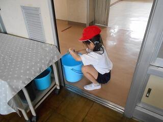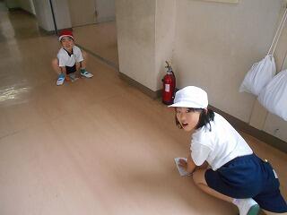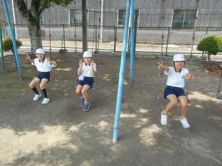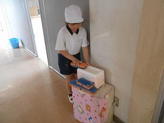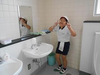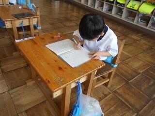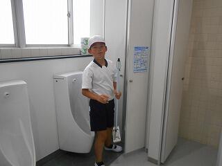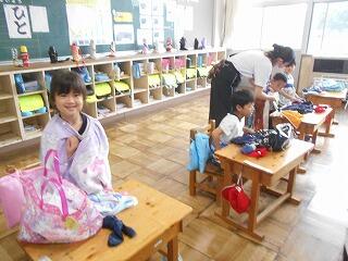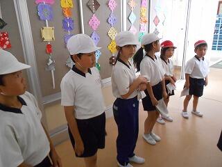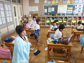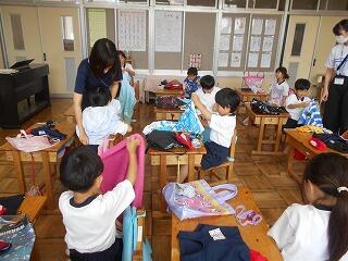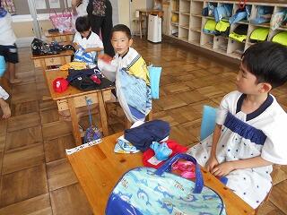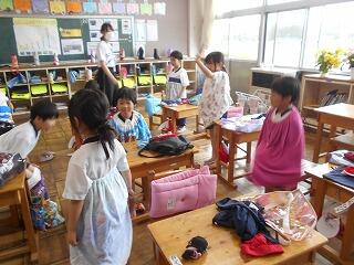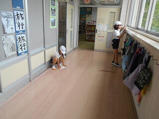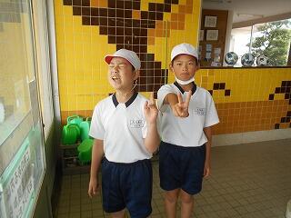 「お着替え中みたいだから、今日は撮るのやめとくね。(校長)」と声を掛けると、「お着替えの練習で服着てるから大丈夫だよ。(児童)」とのこと。プールの授業に向けて、特訓中です!