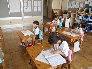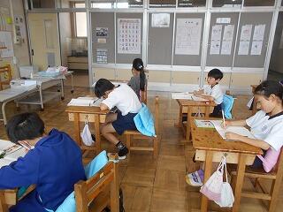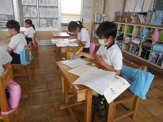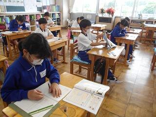 昼休みに、「自主学習サポート教室」を実施しました。発達段階に応じて、自主学習の意義や進め方などについて確認しました。子供たちは、真剣な態度で参加していました。