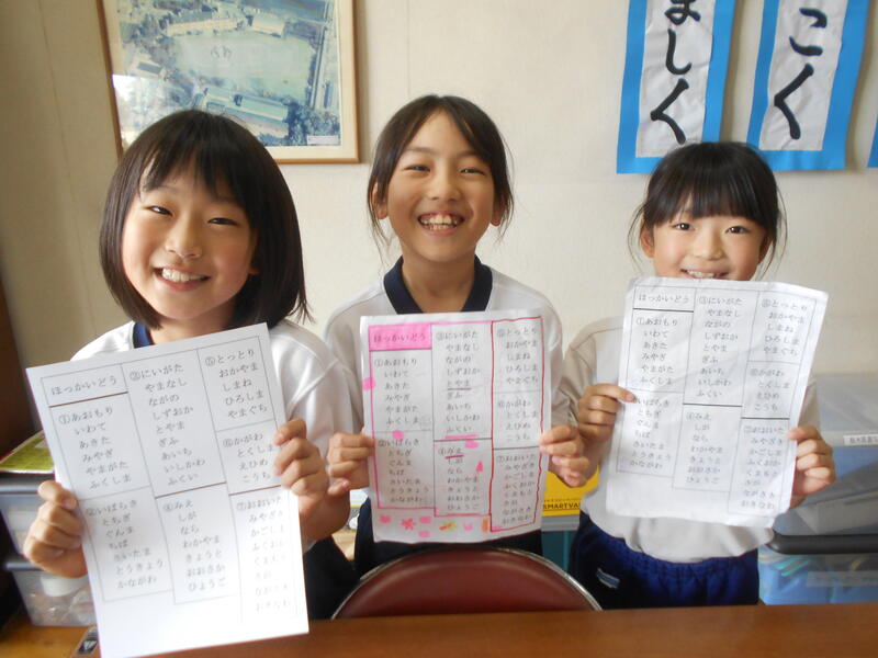 休み時間になると、中学年(ときどき高学年も)の子供たちが、日本の「都道府県」を暗唱(まだ覚えていない児童は紙をみながらでもOK)しに、校長室を訪れます。1回の休み時間に一つの地方しか進めない約束なので、日に何度も通う子もいます。合格のルールは、たった一つ。地方の途中では「息継ぎをしないこと!」だけです。1週間くらいで、およそ形になります。