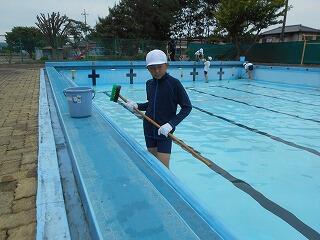 プール清掃の様子【保護者・地域の方による事前清掃】(5/22)