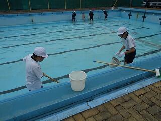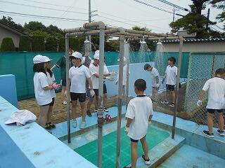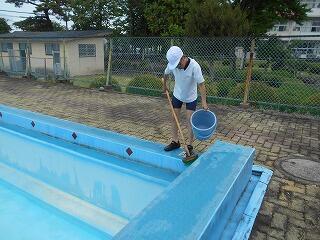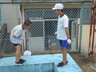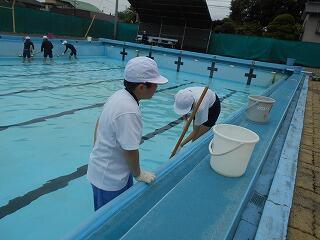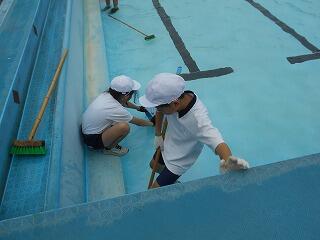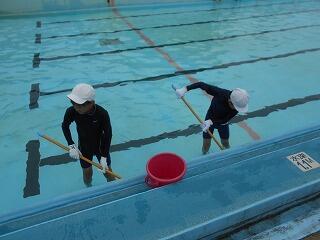 今日は、5・6年児童によるプール清掃が行われました。高学年として、しっかりと活動することができました。