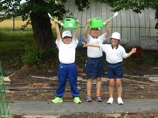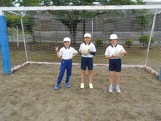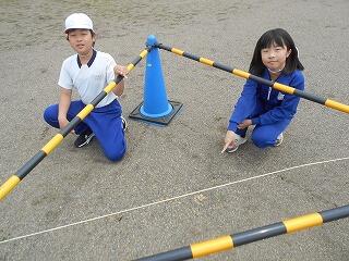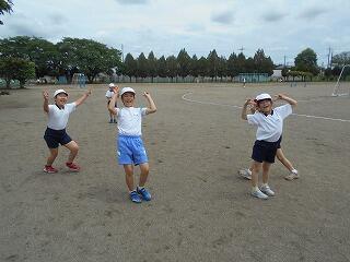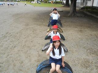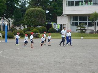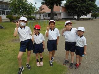 雨はやみましたが、校庭は水たまりだらけです。そんな中、子供たちは、水たまりの無い場所で元気に遊んでいます!