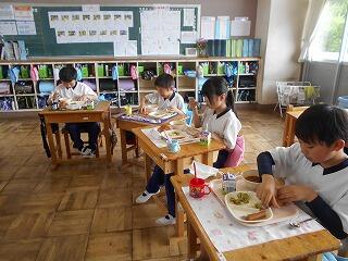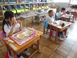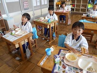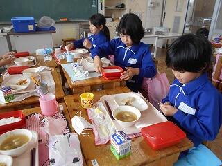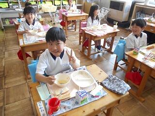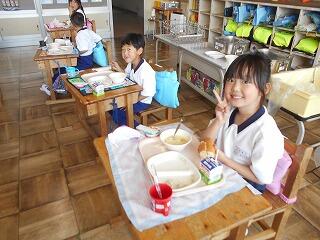「腹減った!」と騒いでいた子供たち。美味しそうに食べています!
