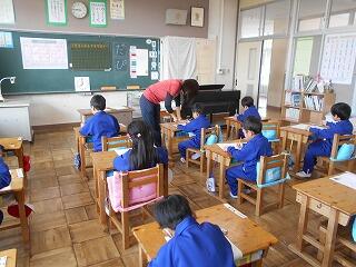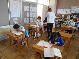 今日は、眼科検診(2年・5年)が行われました。学校眼科医の原先生に診ていただきました。