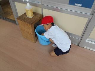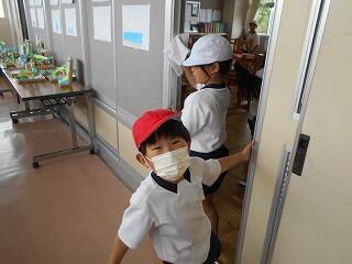 今日は雨が降っているので、子供たちは、室内で工夫しながら楽しく過ごしています。