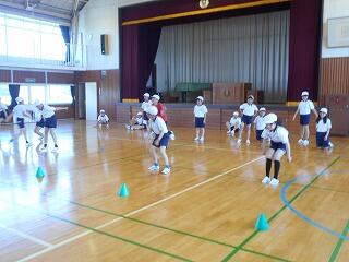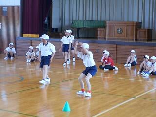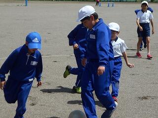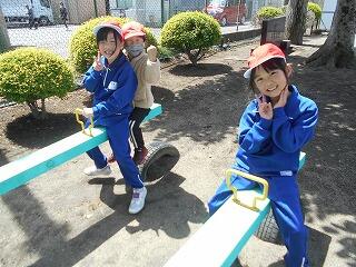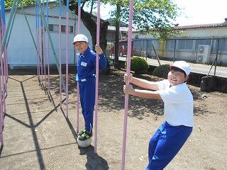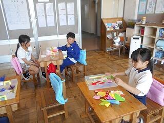 今日の業間は雨が降っているので、子供たちは室内で工夫しながら過ごしています。