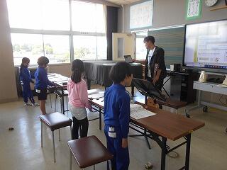 2年生が、国語の「はたらく人に話を聞こう」の学習で職員室に来てくれました。事務主任に、たくさん質問をしていました。