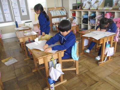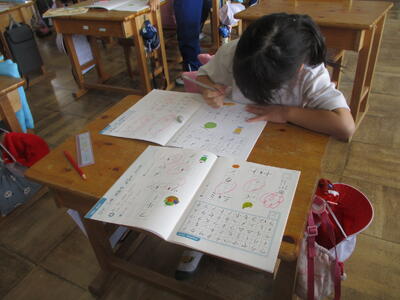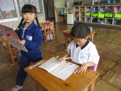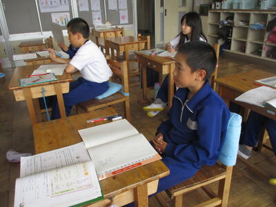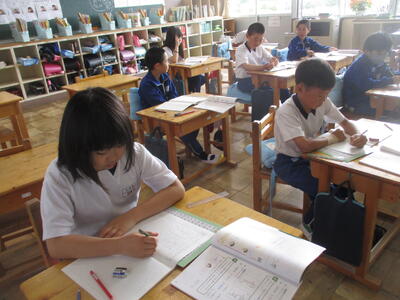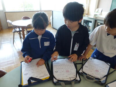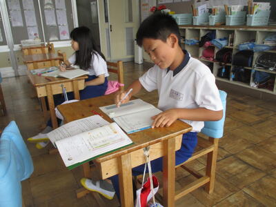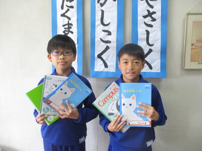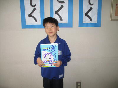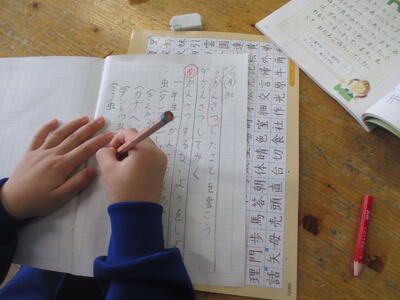 学校経営の努力点「確かな学力」の具体策として、家庭学習を推奨しています。児童が自主学習ノートを1冊終えるごとに、校長室へも見せに来てくれます。