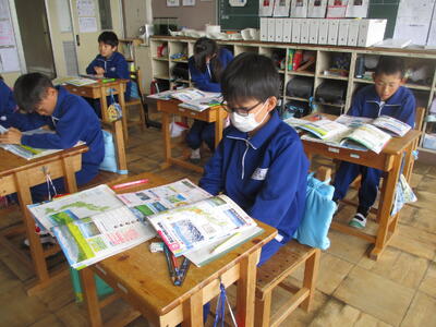 5年生 社会科 地図を使って、日本の地形の学習をしました。