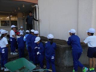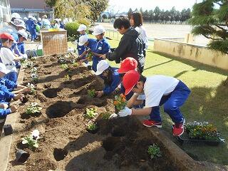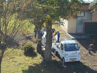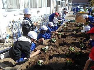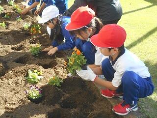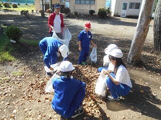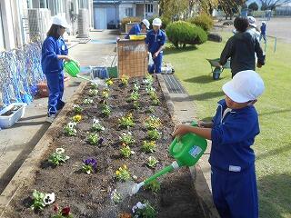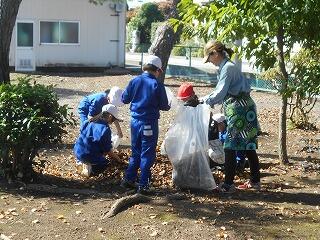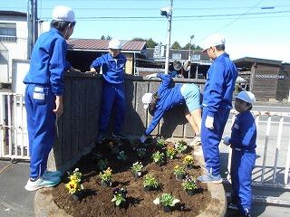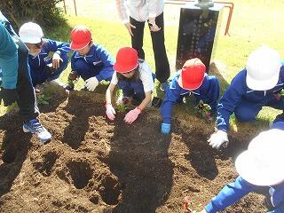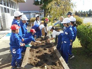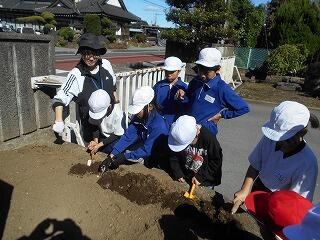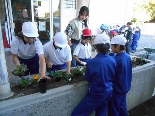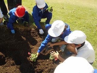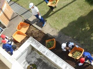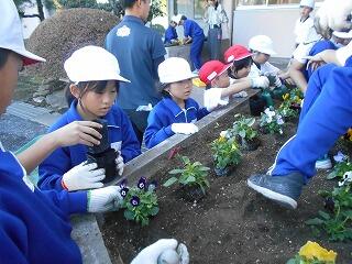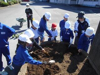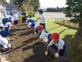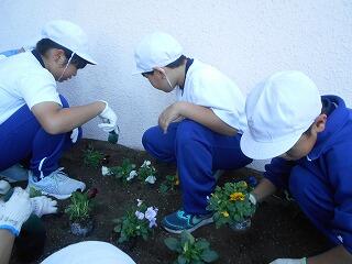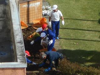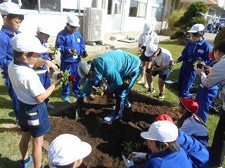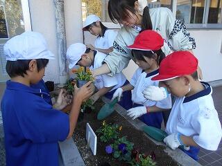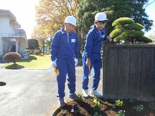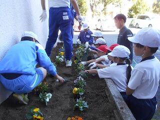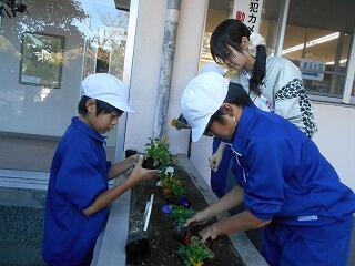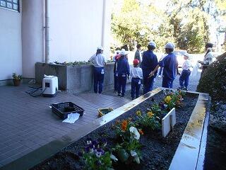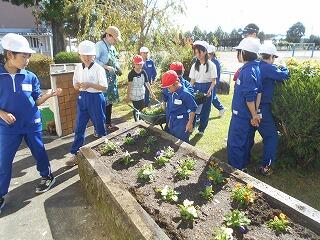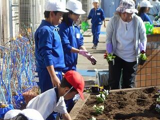 パンジー苗植え・落ち葉さらいの様子(10/28 3校時)