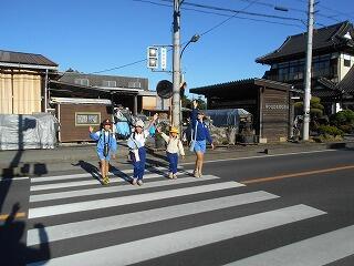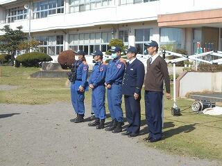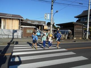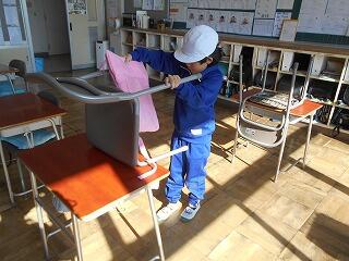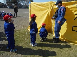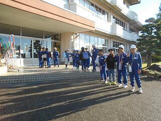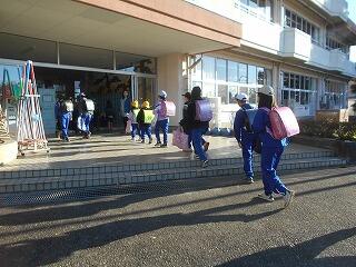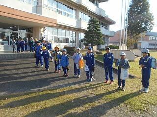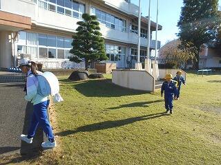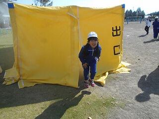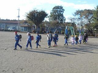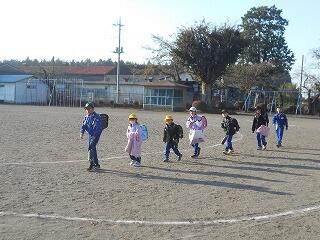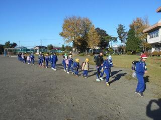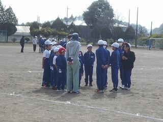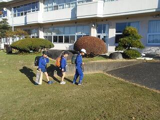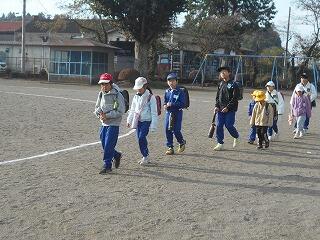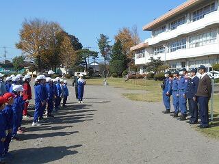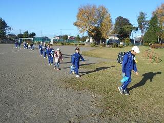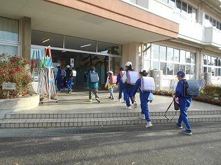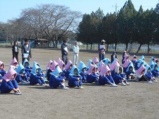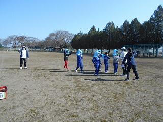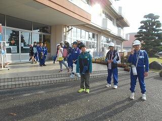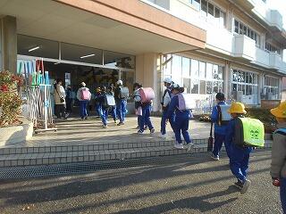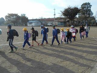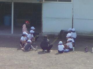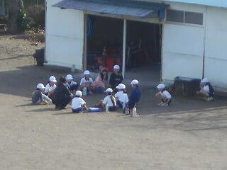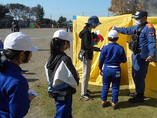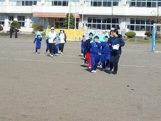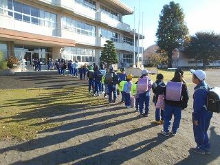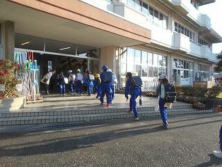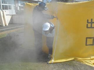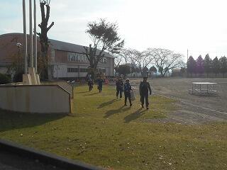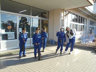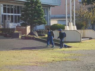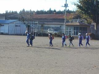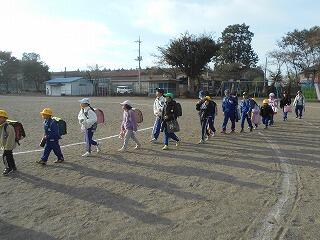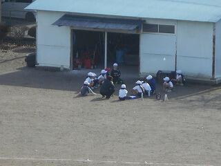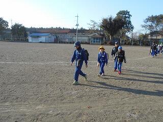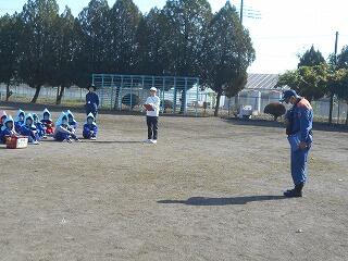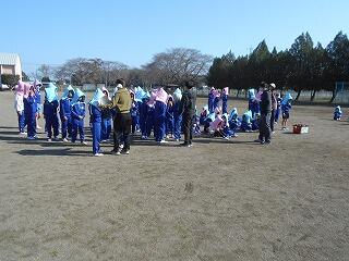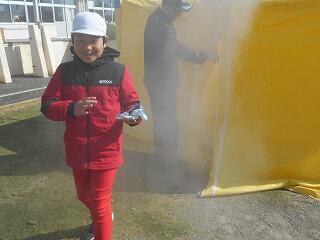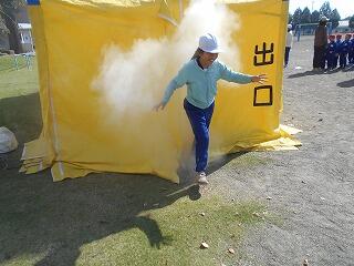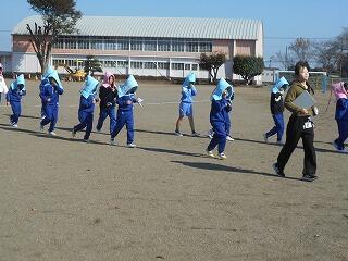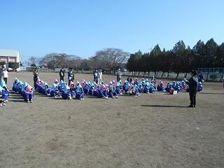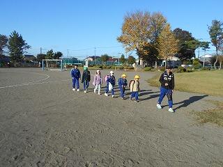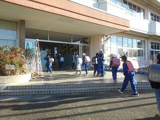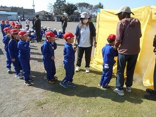 地震・火災の発生後、第1避難場所(校庭バックネット付近)に避難しました。
