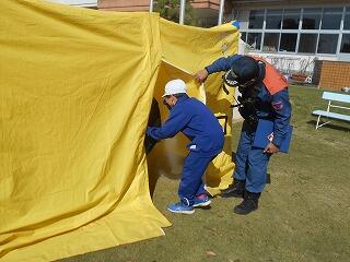 避難訓練の様子②【初期消火活動体験】(10/30 業間)