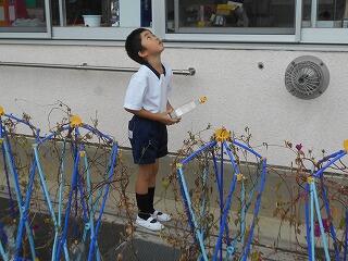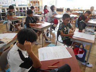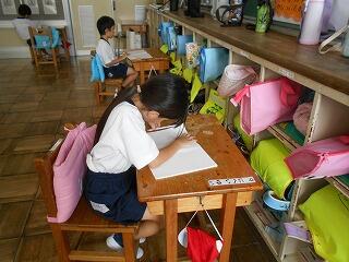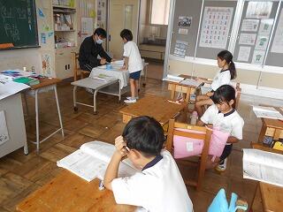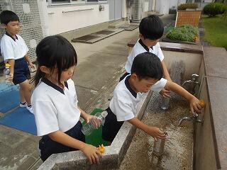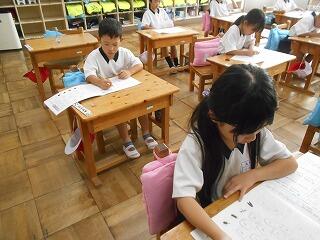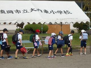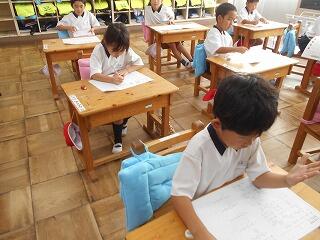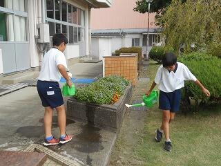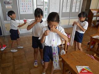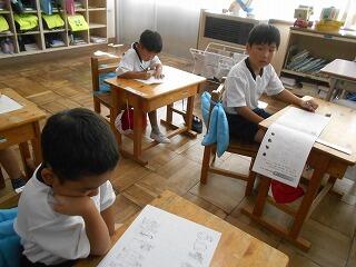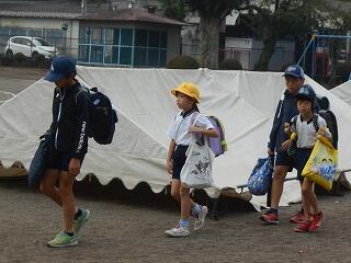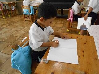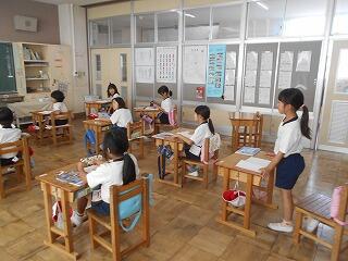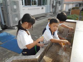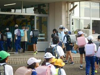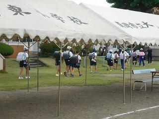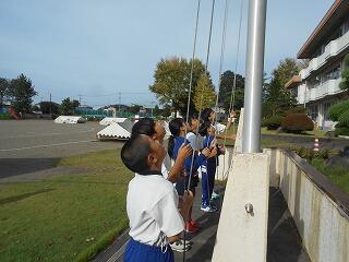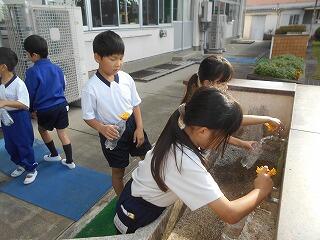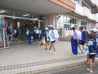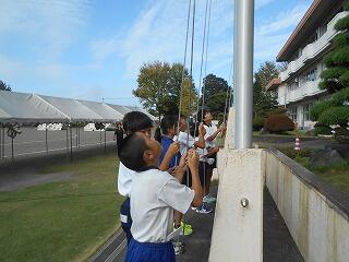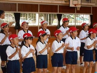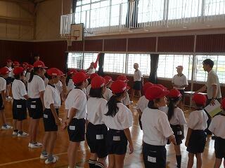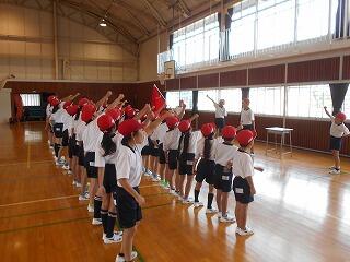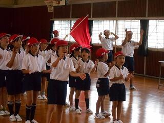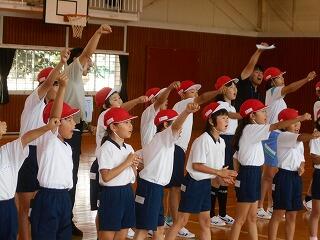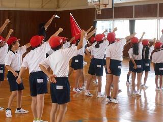 業間には、赤組(体育館)と白組(校庭)に分かれて応援の練習を行いました。体育館の赤組の声は校庭の白組に、校庭の白組の声は体育館の赤組までしっかりと聞こえてきます!それぞれの大きな声に刺激されてか、声もどんどん出るようになってきました!練習が終わり昇降口に戻ってきた子供たちからは「ああ、のどが痛い。」などの声が聞こえてきました。「頑張った証拠だね!」と声を掛けると、多くの児童がにっこりと笑顔を見せてくれました。頑張ったときに味わえる達成感、大切にしていきたいものです!