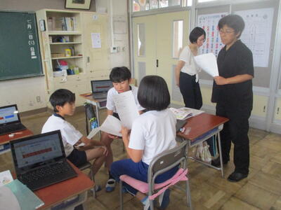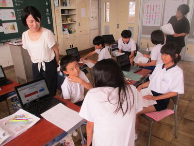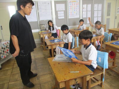 6年生 道徳科 現在、大学へ内地留学している職員が授業を行いました。