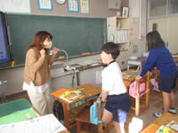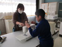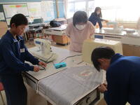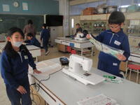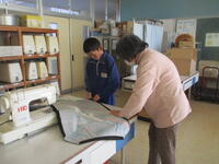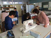 5年生 家庭科 ボランテア様におせわになって、ミシン実習を行いました。