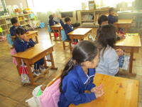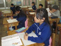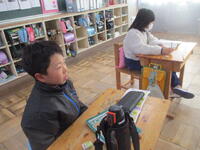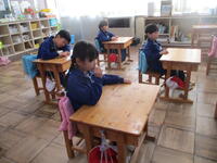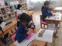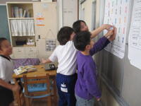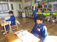 1年生 朝の会 毎朝、テーマを決めて、スピーチをおこなっています。