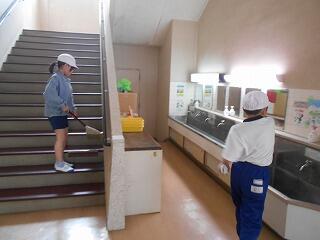 どの児童も、一生懸命清掃に取り組んでいます。
