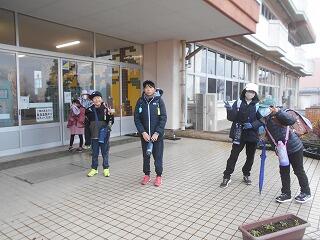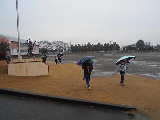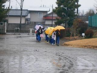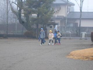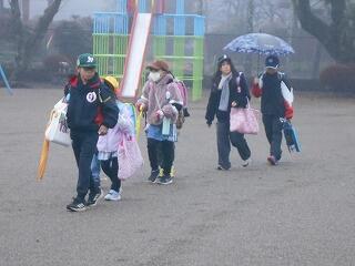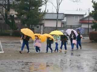 冷たい雨にも負けず、子供たちが元気に登校してきました!